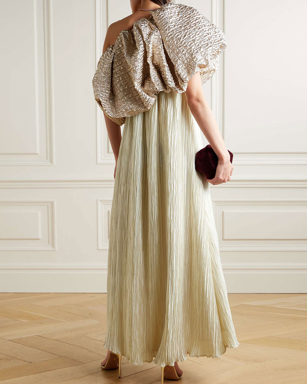 Convertible Popcorn Lamé and Plissé-Crepe Gown