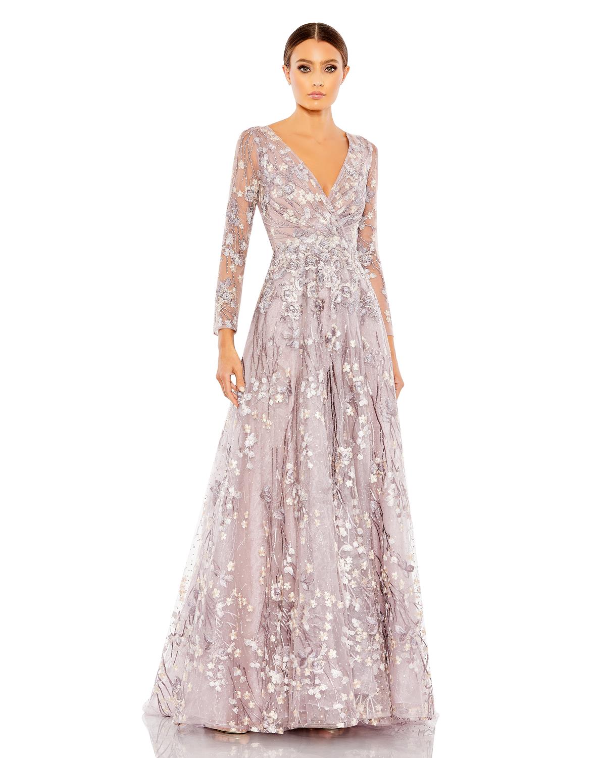 Embellished Wrap Over Illusion Long Sleeve A Line